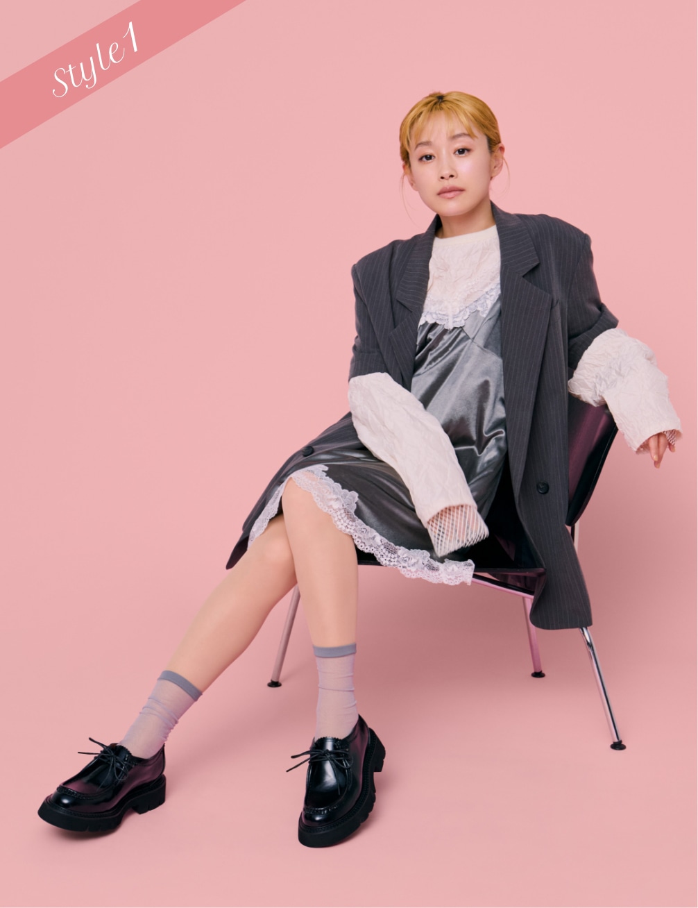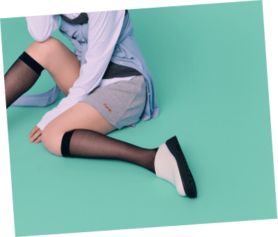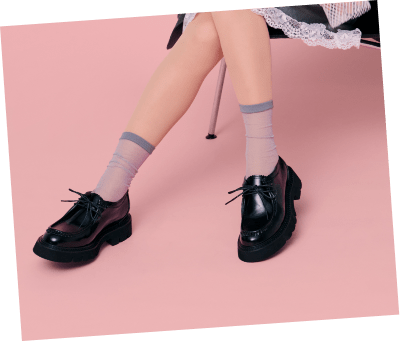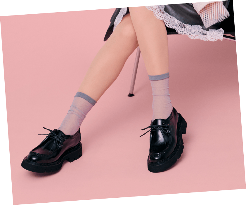 シアータイツに、シアーソックスを合わせたコーディネート。
