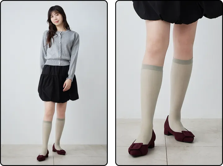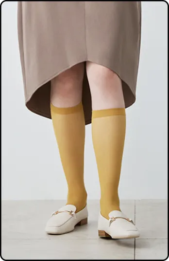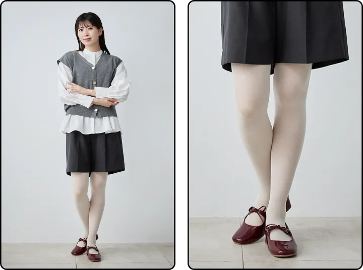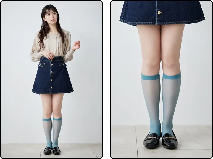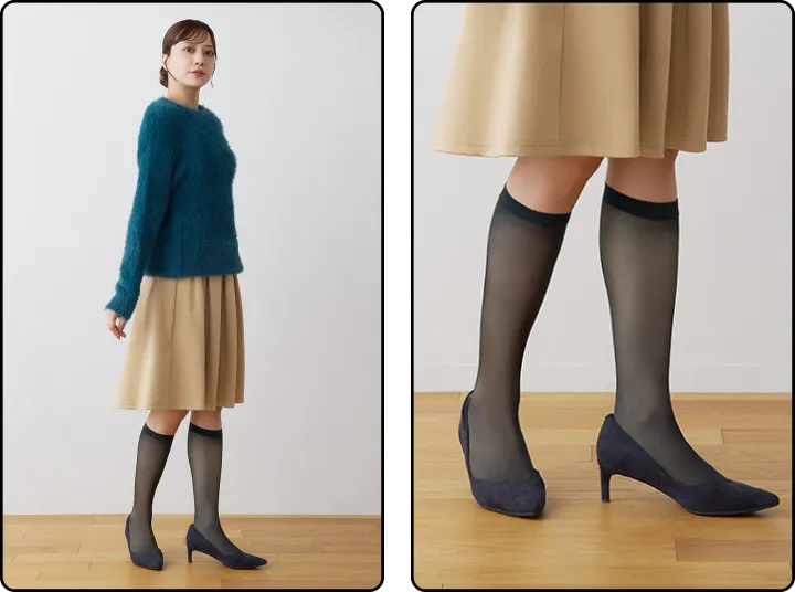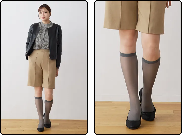 短めボトムスやスカートに合わせて、トレンド感UP。肌がほんのり透けて、コーデに軽やかさをプラスします。