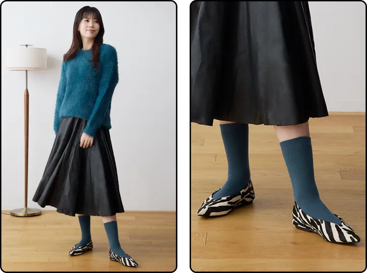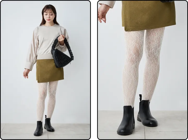 脚もとに、奥行きのある華やかさをON。繊細な編み柄が毎日コーデにエッセンスを加えます。