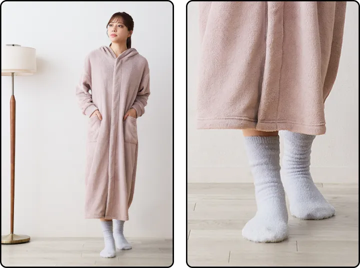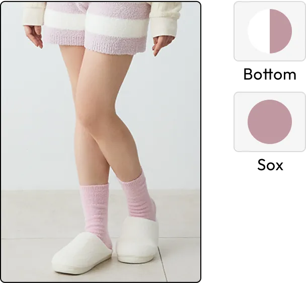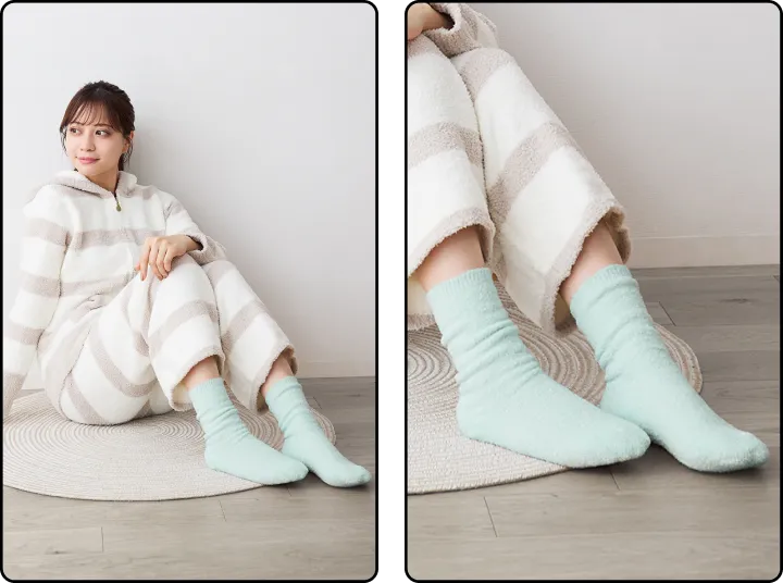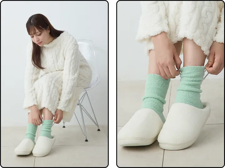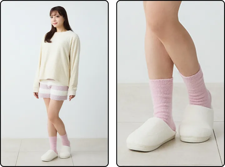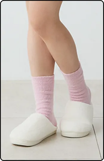 長すぎず、短すぎない絶妙な丈感が、様々なルームウェアに合わせやすいルームソックス。おうち時間を快適に。