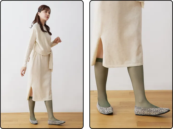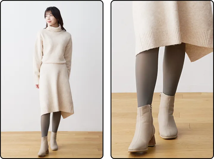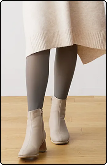 薄手のカラータイツのようでありながら、内側は裏起毛でしっかりと包み込みます。