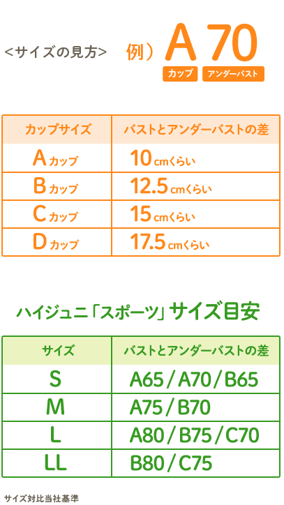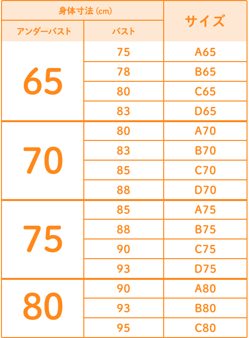 カップサイズはバストとアンダーバストの差で決まるよ。バスト-アンダーバスト=カップサイズ