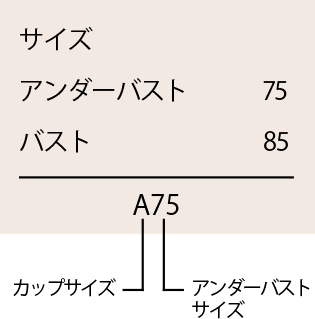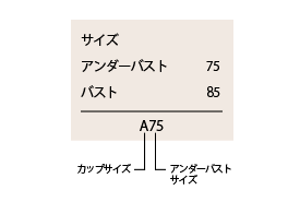 ブラジャーは基本的に、『A○○』というカップサイズと、『○75』というアンダーバストサイズで表示されています。