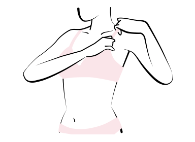 ブラジャー下辺をアンダーバストに合わせながら前で留める。 -