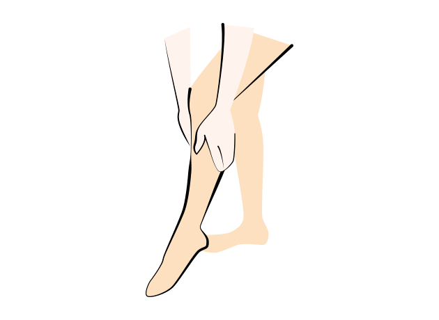 左右を交互に十分に引っぱりながら、足首からひざへ、ひざから太ももへと引き上げます。 -