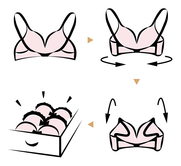 ブラジャーは、カップがつぶれたり変形したりしないようにたたみましょう。