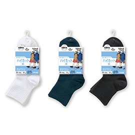 従来品よりもポリエステル率を高混率にすることにより、スクールソックスに求められる丈夫さを30%UPしました。