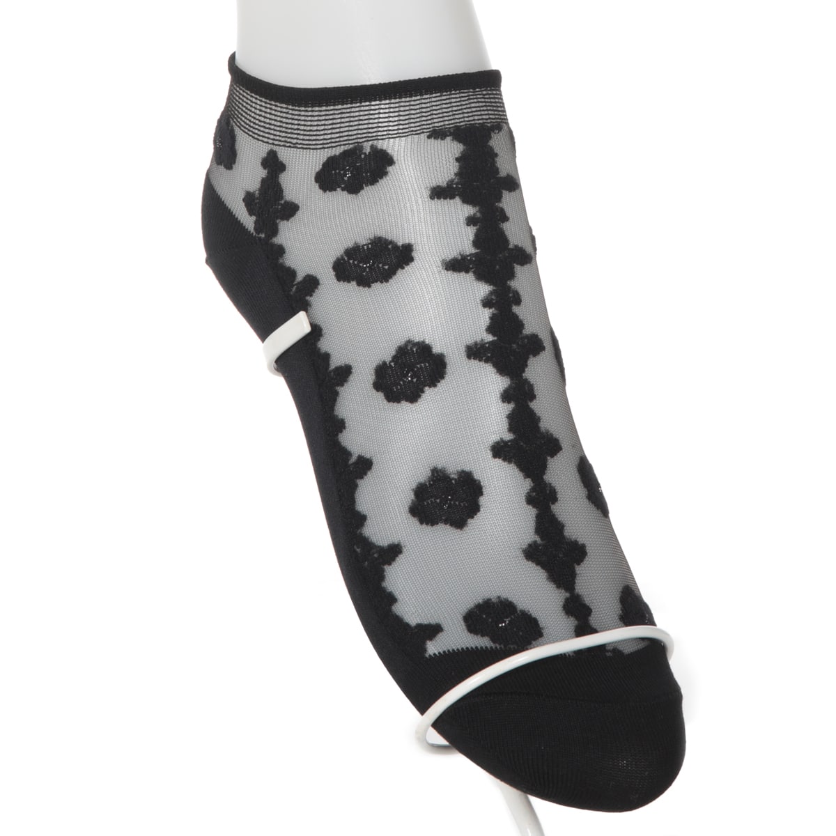 ビクトリアクローバー柄、スニーカー丈、身生地透け感あり、部分光沢糸使用、足型セット加工