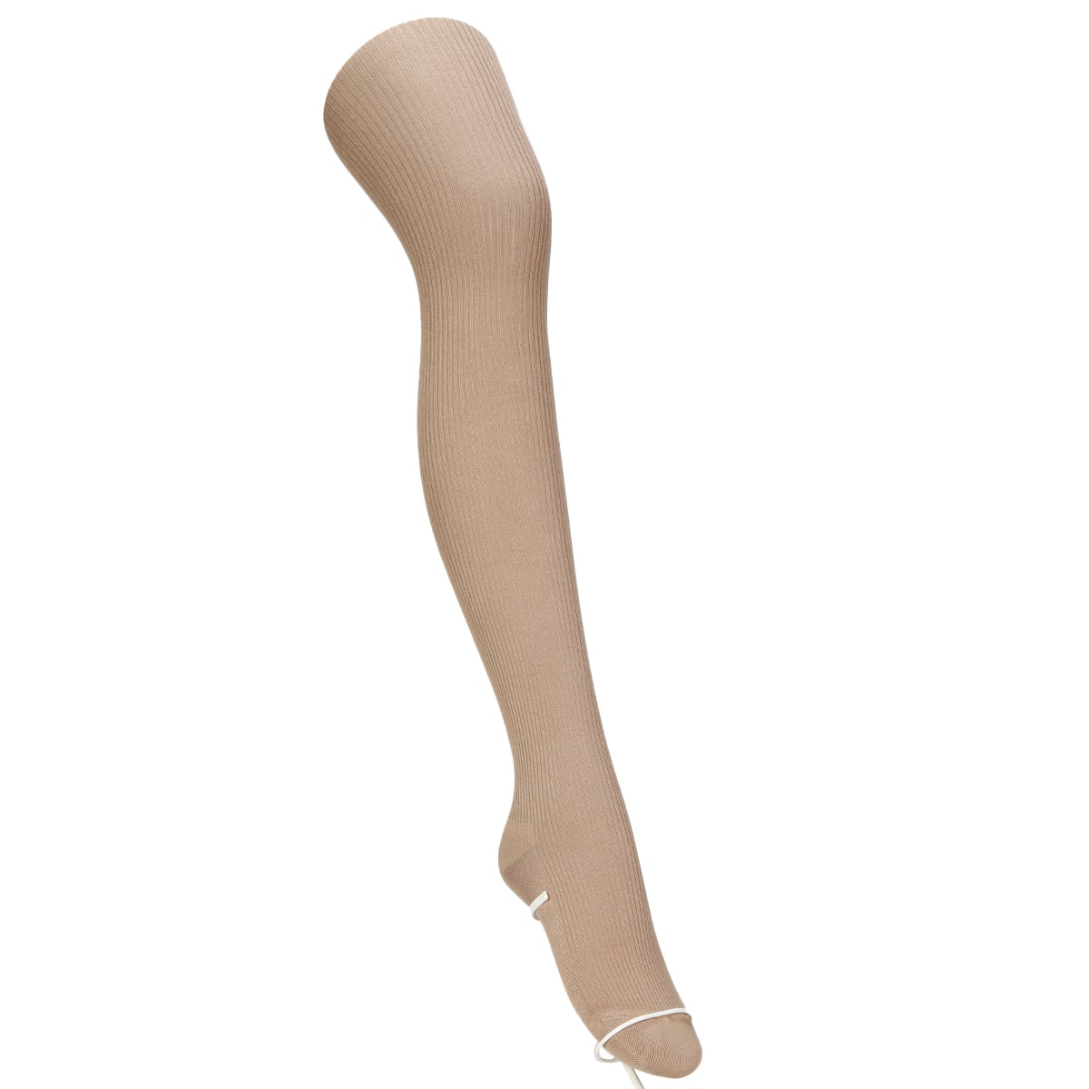 400デニール相当、2×1リブ、吸湿発熱繊維使用、ロングダイヤマチ、ヌードトウ、通常ヒール、足型セット加工、バックマーク付
