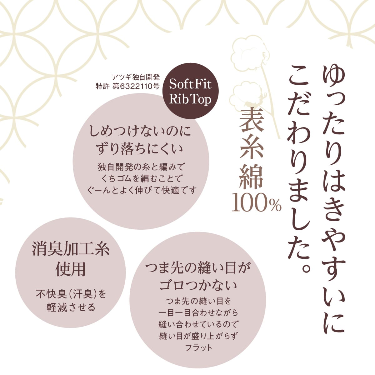 クチゴムゆったりで、つま先の縫い目がゴロつかない21cm丈のソックス。