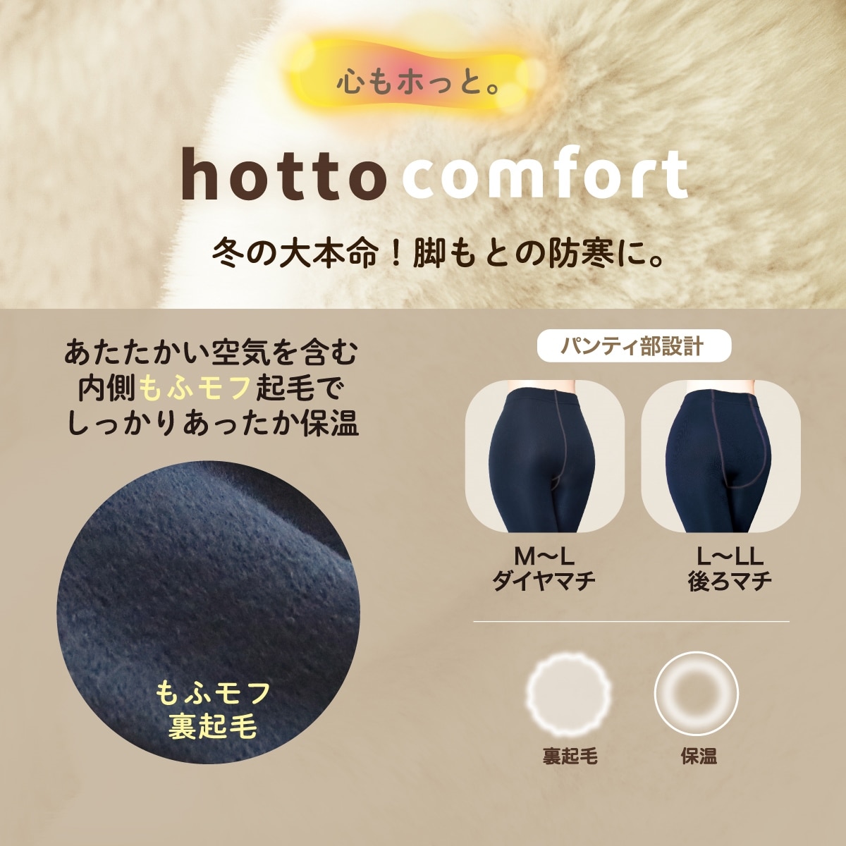 160デニール相当、ダイヤマチ(M~L)/後ろマチ(L~LL)、裏起毛、フラットシーム、ヌードトウ、バックマーク付