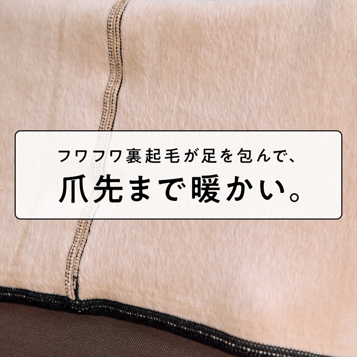 見た目は薄手のカラータイツのようでありながら、内側は裏起毛でしっかりと包み込みます。